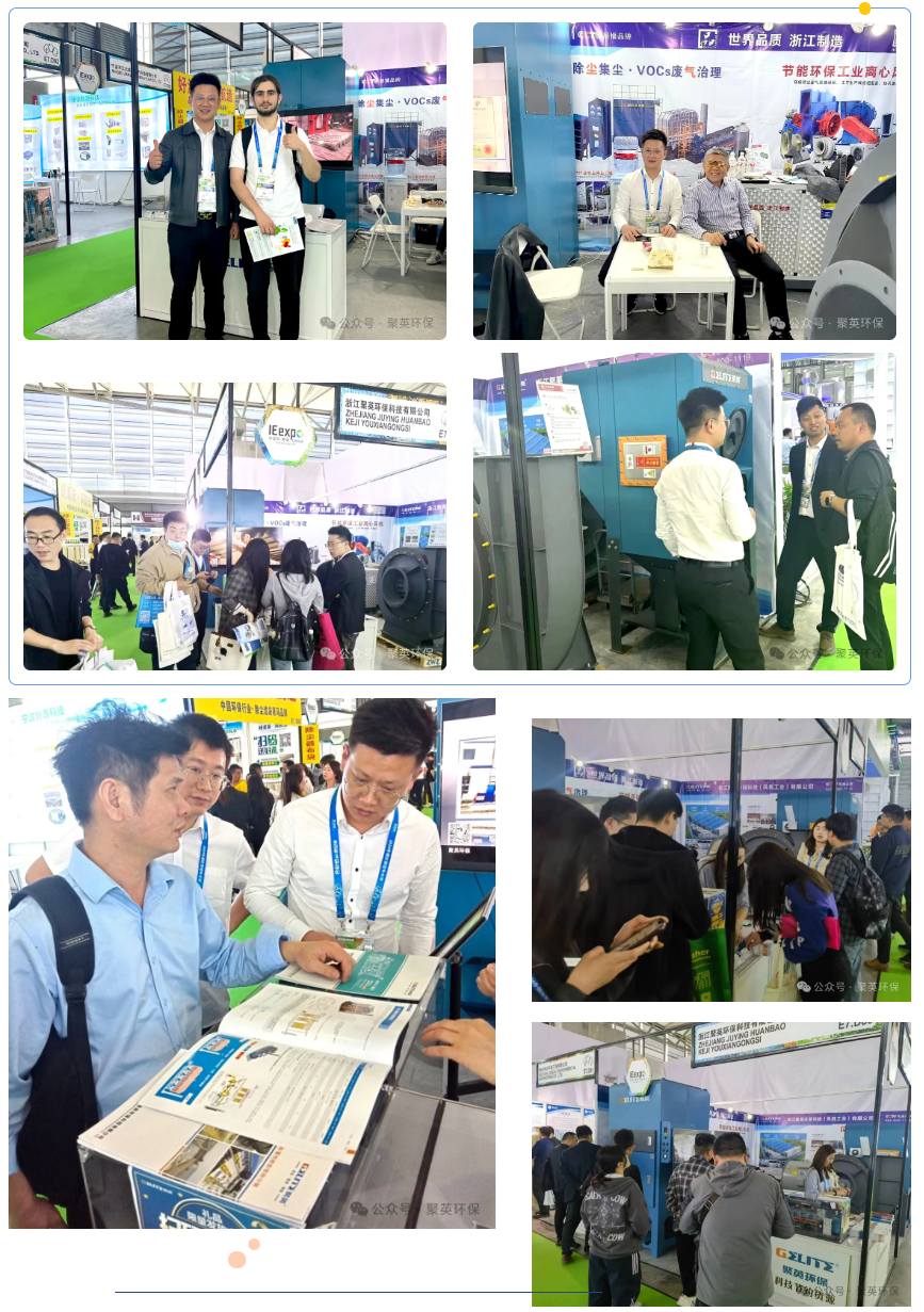 展位設計聚焦于創新產品的展示、完善的客戶服務介紹,以及我們對于環保行業發展節能趨勢的深刻洞察。這些元素共同構成了一個引人入勝的展示空間,讓每一位參觀者都能深刻感受到浙江聚英在環保領域中的不斷探索。